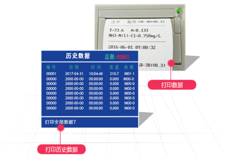 儀器內(nèi)置打印機,可打印當(dāng)前數(shù)據(jù)和所有存儲的歷史數(shù)據(jù);